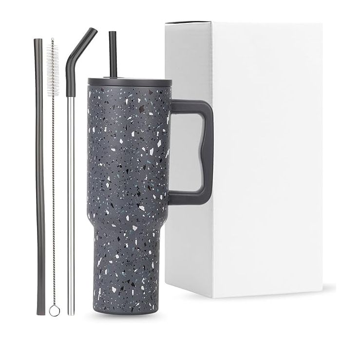 • Insulated tumbler featuring double-wall construction to keep beverages hot or cold for hours, with a leak-resistant lid and ergonomic design for convenient everyday use.
