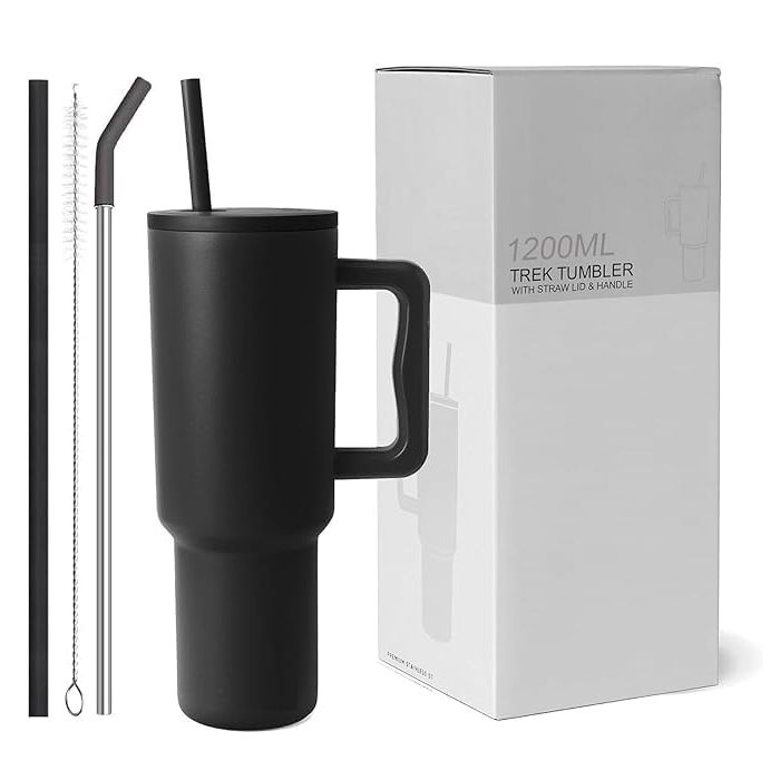 Description / Tumbler with lid and Straw 1200ML Cup Stainless Steel Vacuum Insulated Tumbler for Water, Iced Tea or Coffee 1.2L Office Gym Travelling Plain Black